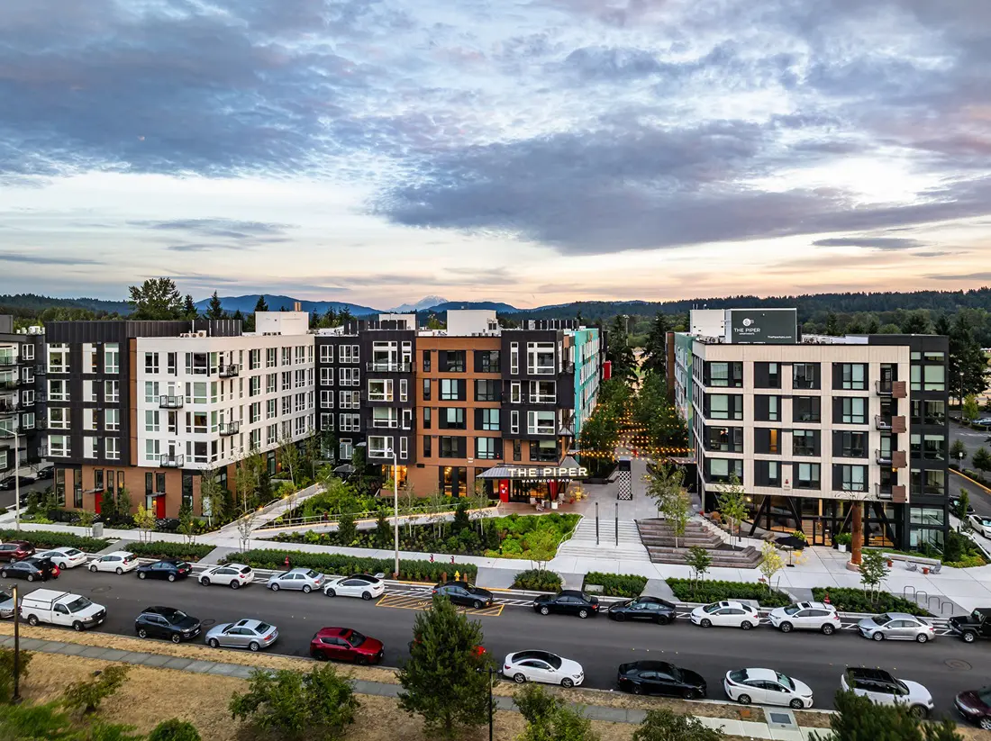 Parkside community takes root. Nestled against the edge of Marymoor, King County’s most popular park, Piper introduces residential apartments to an area traditionally home to warehouses and converted retail spaces. Two distinct buildings – each designed with its own architectural approach and unique materials – respond to the City of Redmond’s vision to create a vibrant community that will in turn become the catalyst for further residential growth nearby.