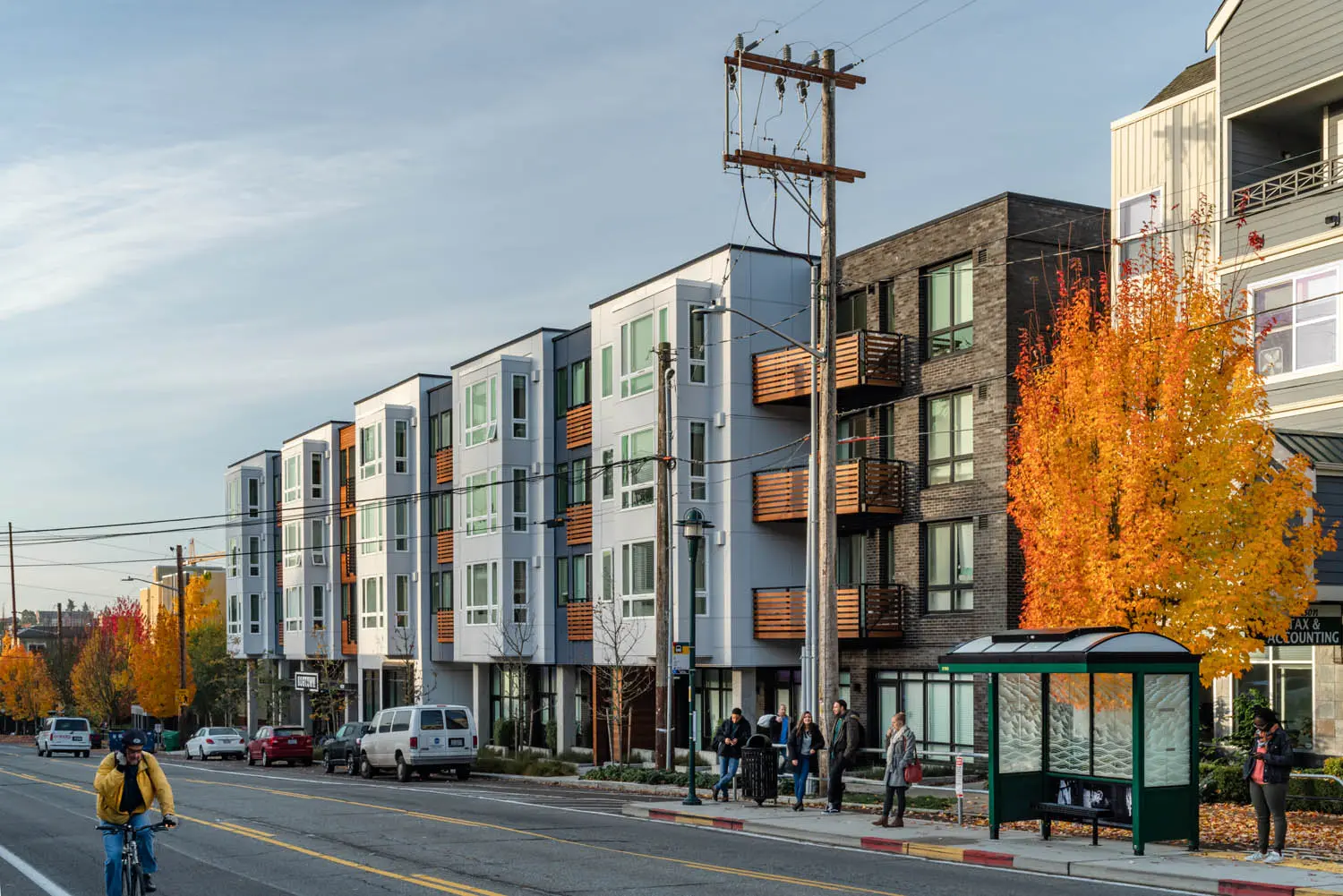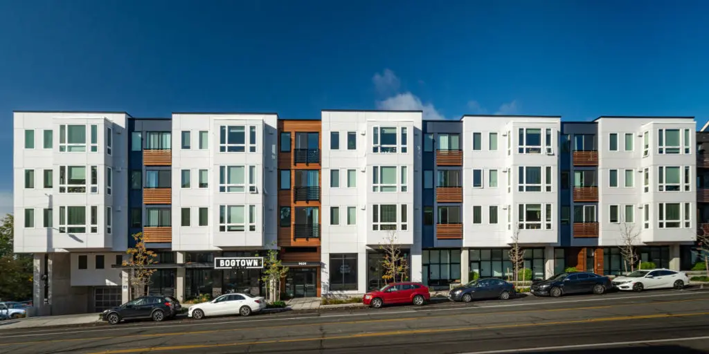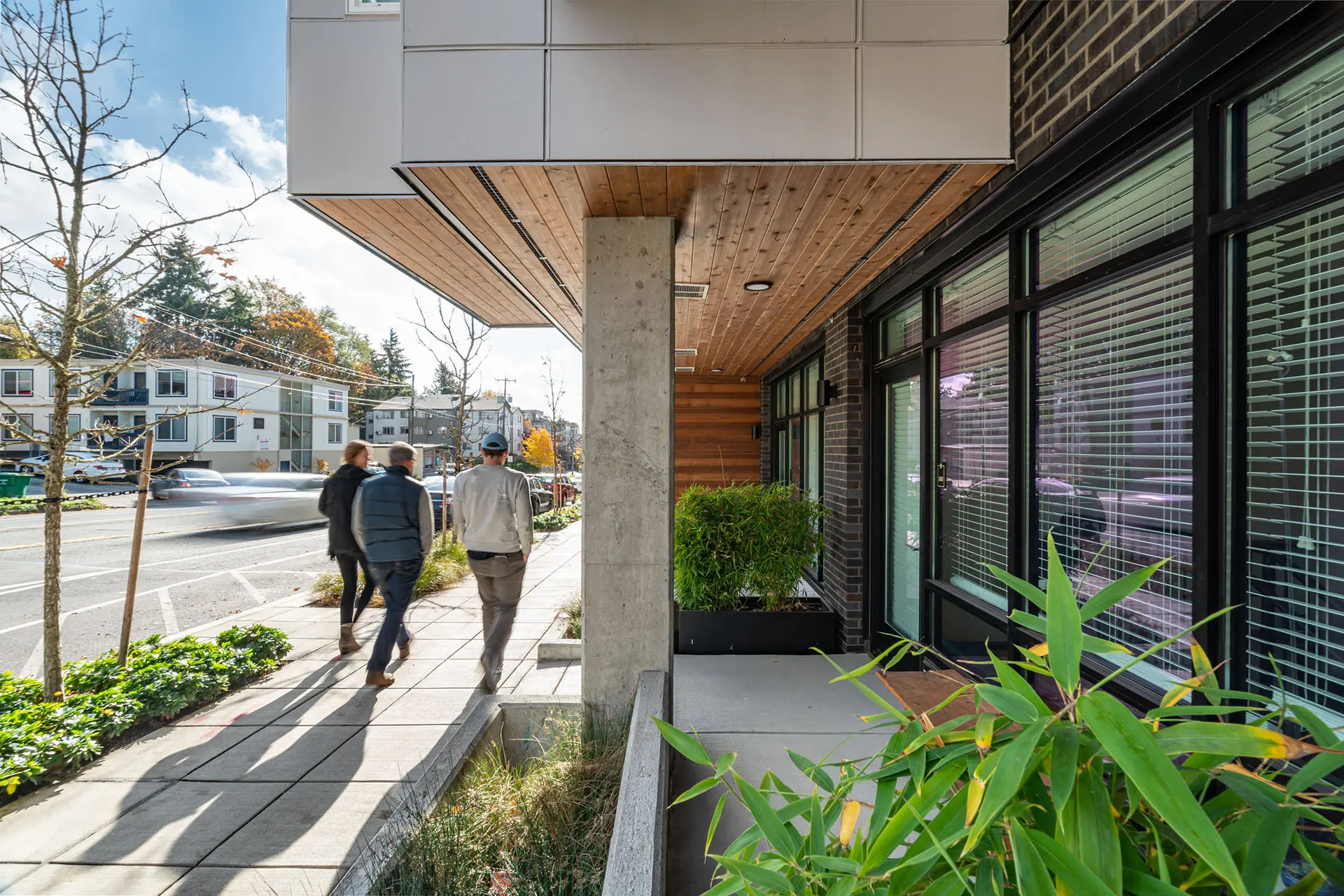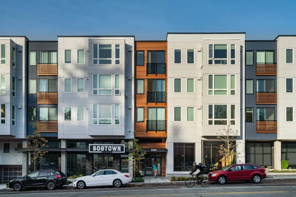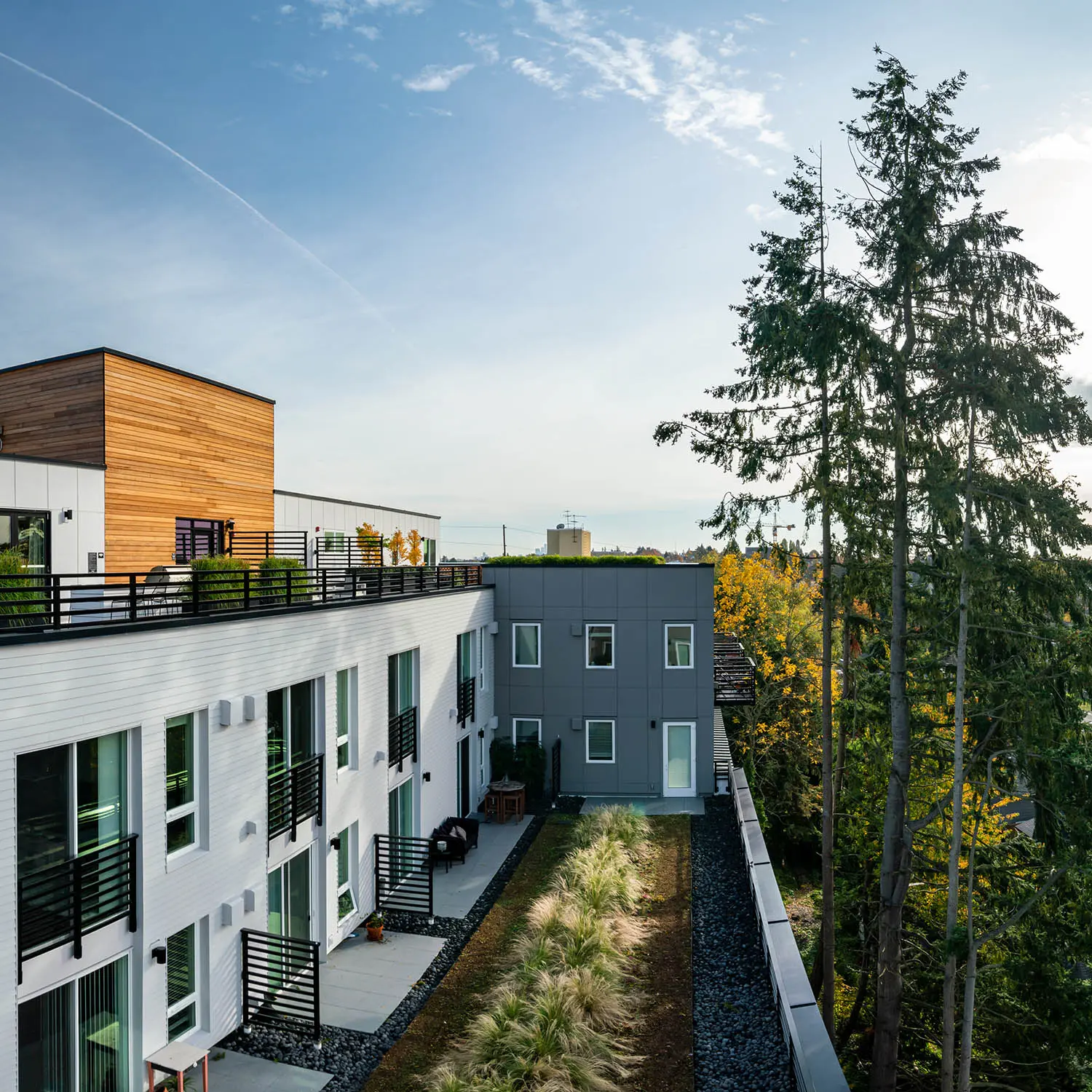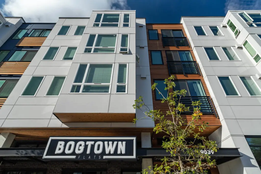 Located in eclectic Greenwood, the Bogtown Flats project offers warm familiarity and bit of the unexpected. Named after the location’s beginnings as a bog, the area was once considered unbuildable. Navigating a high water table and the incredibly steep terrain created design challenges which required divergent thinking. We also wanted to design a building that would feel like townhomes and not dominate the single-family houses in the community.