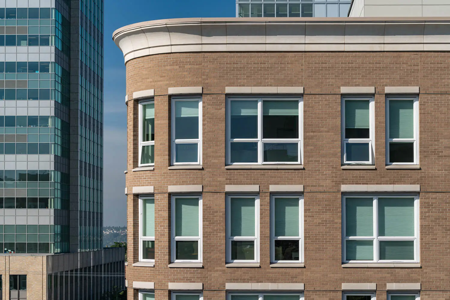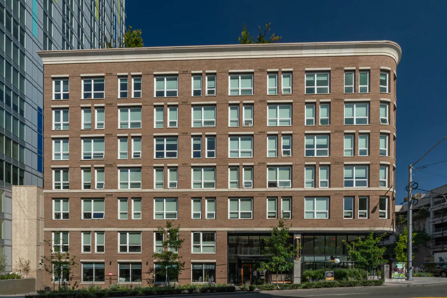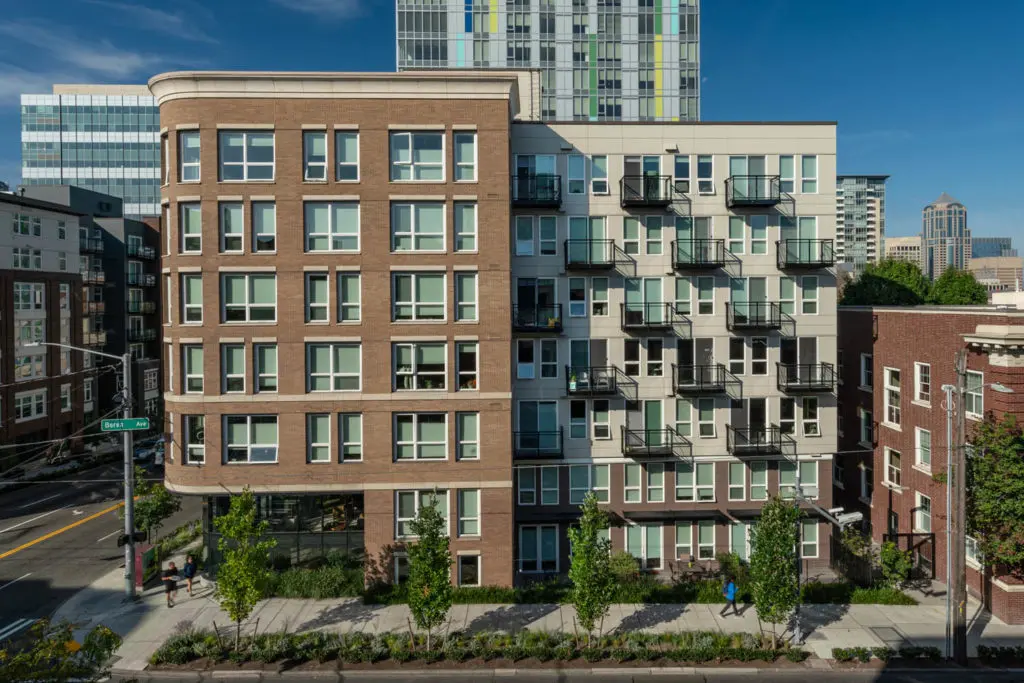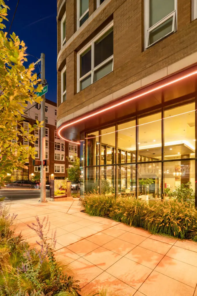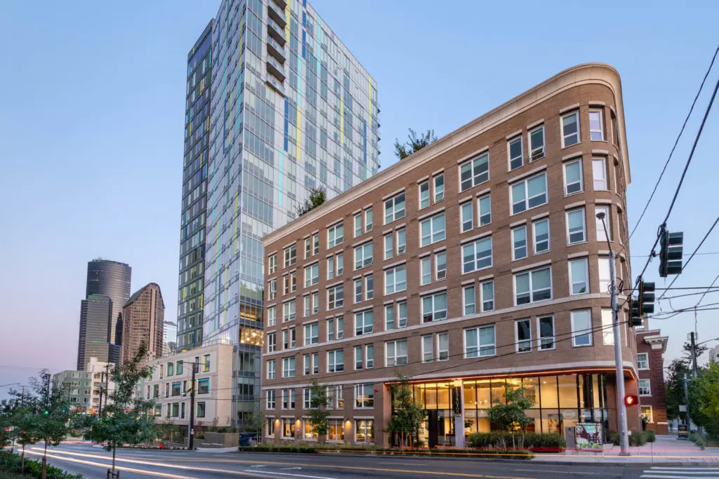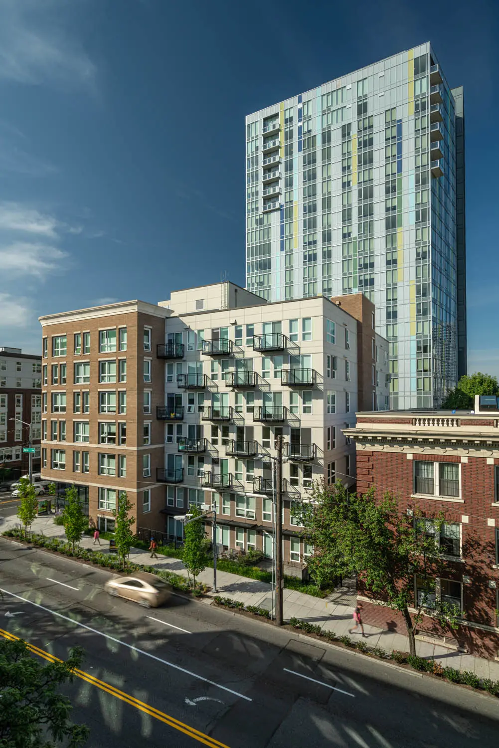 First Hill is a densely populated neighborhood where the old is merging with new construction. It’s walk-able, well-connected and peppered with small residential buildings, distinguished mansions and swaths of old-growth trees. It’s also surrounded by hospitals, adding a layer of bustling urbanity in the early morning and late nights. The challenge was to design a prominent building while accommodating the surrounding condominiums, both standing out and fitting into the immediate neighborhood.
