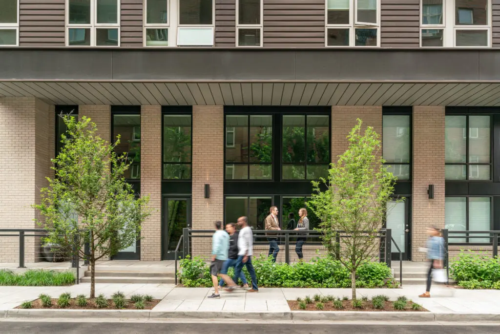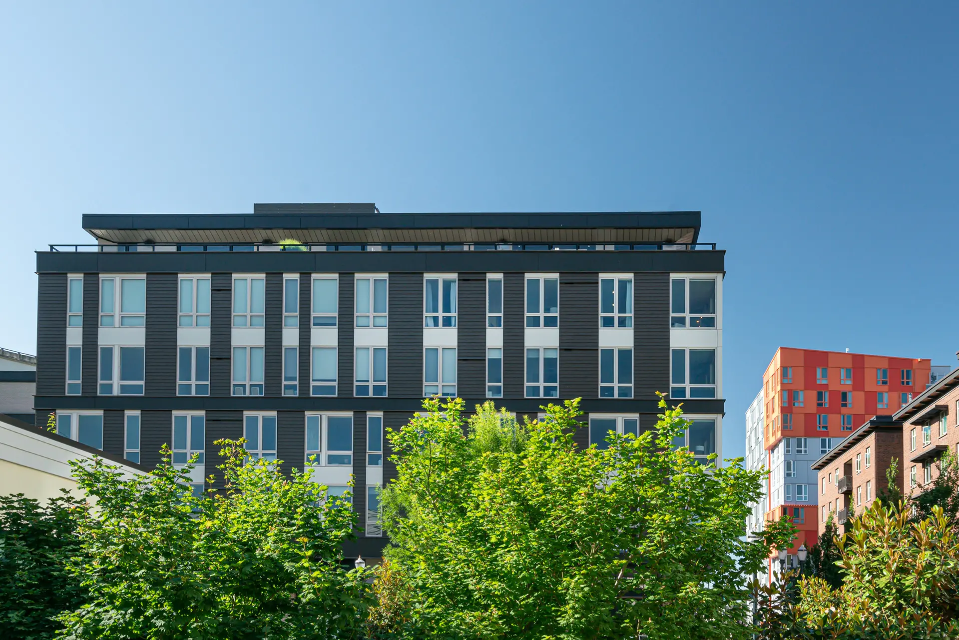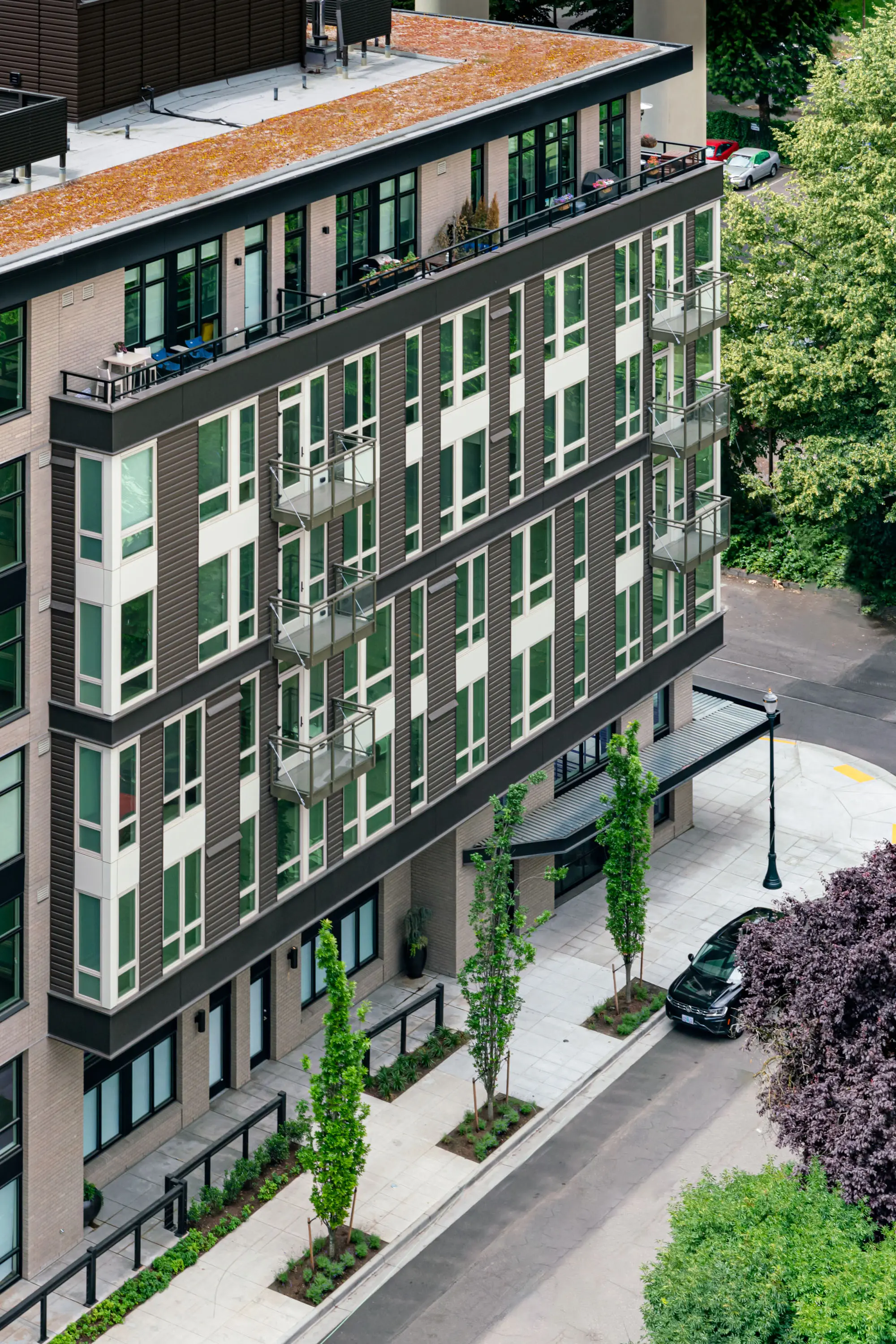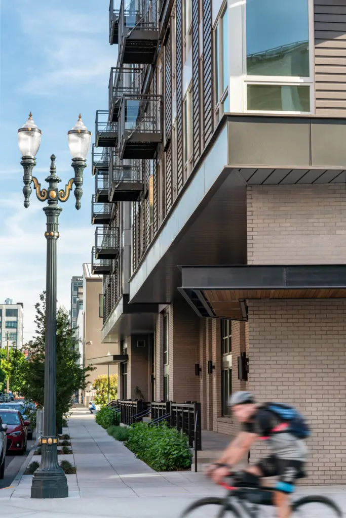 The Pearl District announces its story architecturally. As a former industrial district, its working past visually echoes through historic facades, street-facing loading docks, and pioneer-era rail yard sites. Following a period of rapid change—in which many existing buildings were updated into revitalized community, office, technical, and entertainment spaces—the neighborhood now exhibits an eclectic mix of building heights, materials, and eras. Our challenge was to create a six-story mixed-use building which would be appropriately reverent to its diverse urban context—while also standing out with interest in its own right.