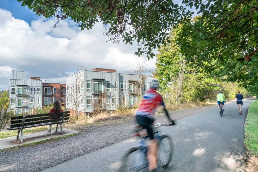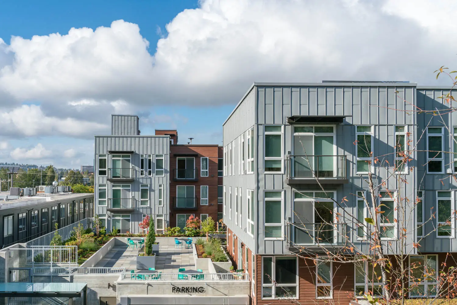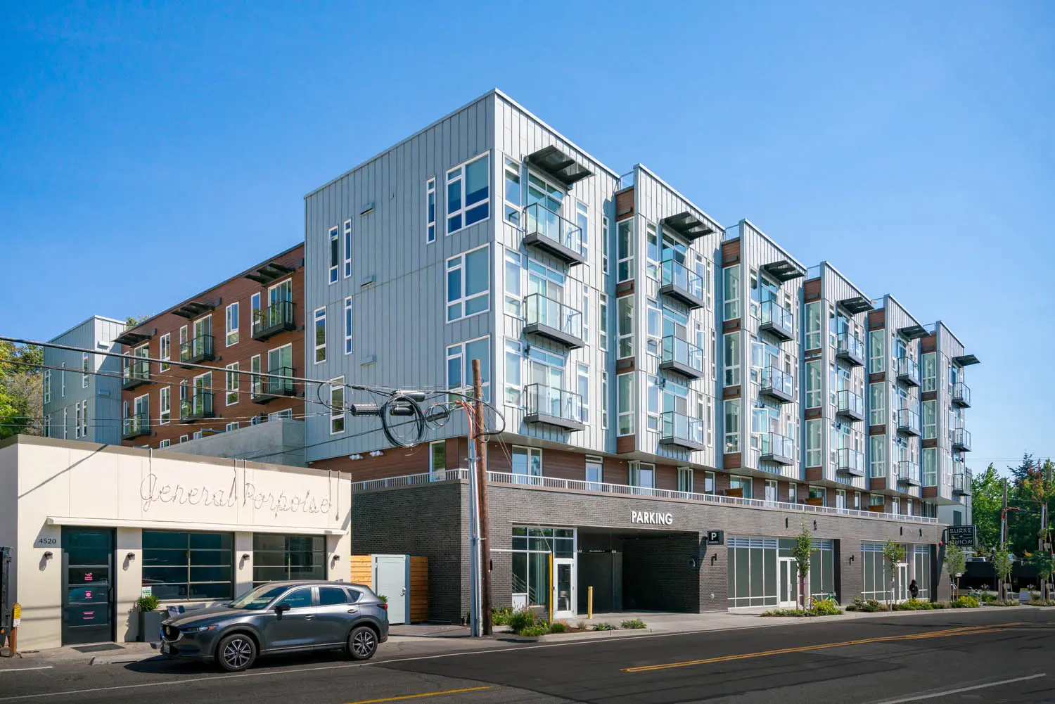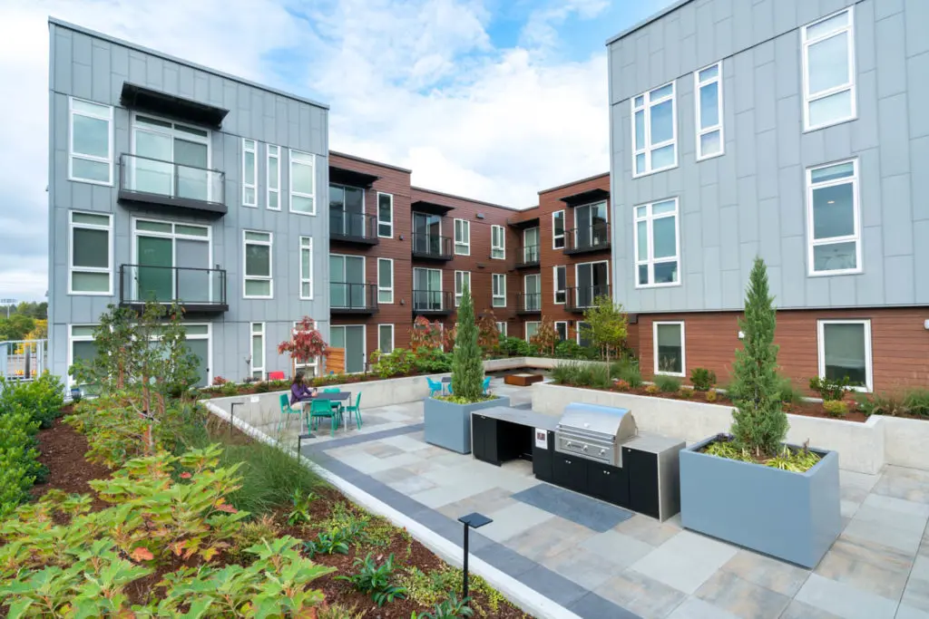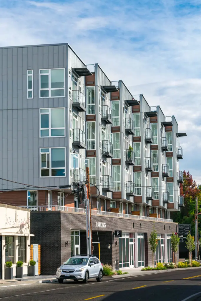 Burke + Union is located just north of the University of Washington, abutting the historic Burke Gilman Trail. Our project involved transforming an existing parking lot into an apartment building, with the added challenge of working within a trapezoidal-shaped site with multiple environmental issues: a high-water table, peat settlement, historic landfill, methane abatement, and potential landslide risk. One by one, we solved the challenges, creating a community that has catalyzed a wave of engaging multi-family projects along Union Bay Place Northeast.