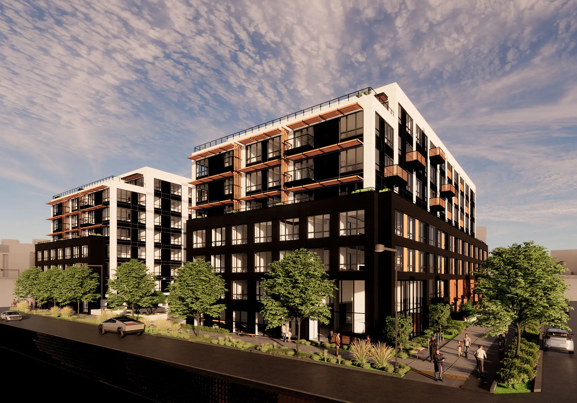 Carefully considered human-scale architectural details, open green spaces, and lush landscape buffers form an inviting pedestrian experience, while new retail opportunities activate Spring Street with shopping and dining—enhancements that will be enjoyed by both residents and neighbors alike.