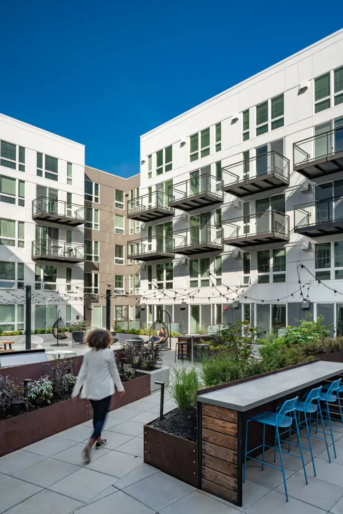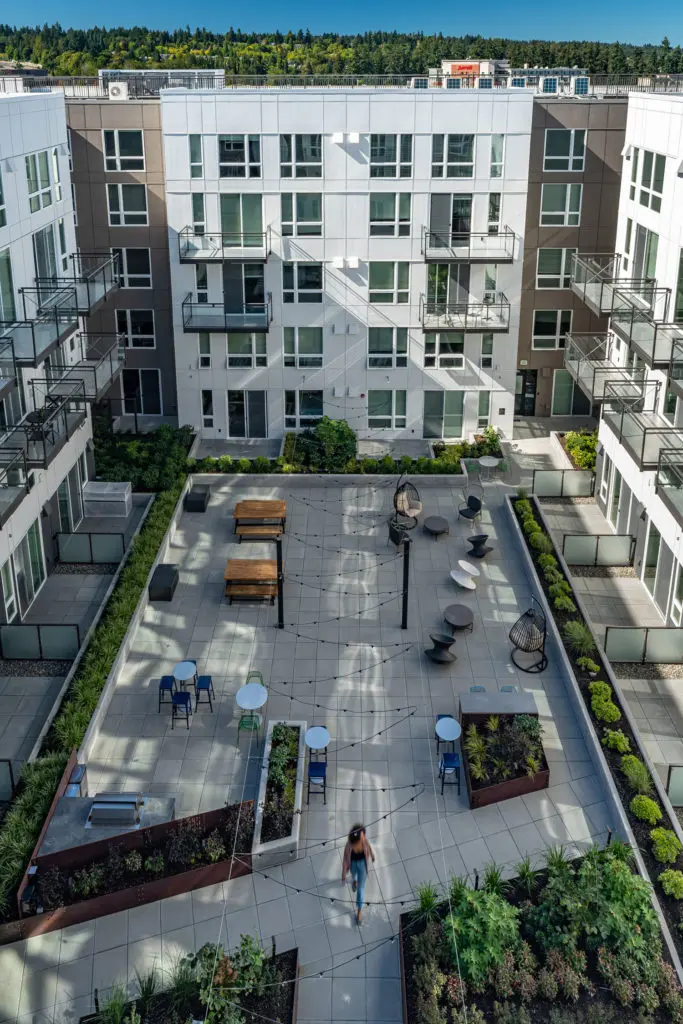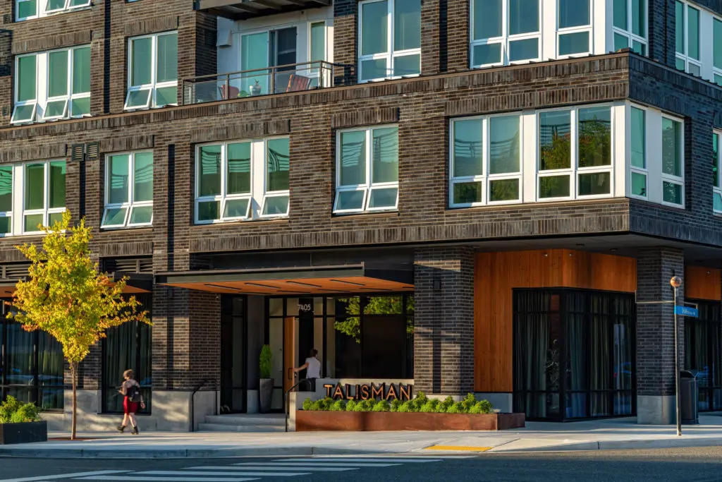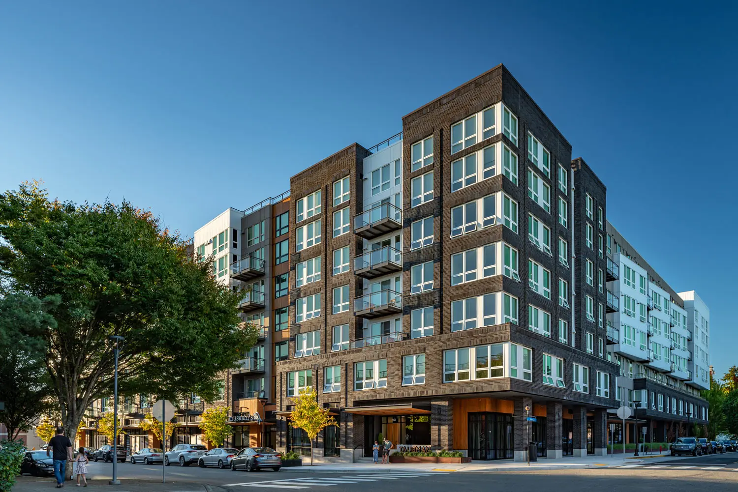 Talisman is the first residential project within the Redmond Town Center, a development that houses shopping, offices, parking and a future light rail station. The challenge was to intertwine the residential experience in the existing plan, as well as to conceal its 500+ parking stall garage in a graceful way. We also needed to avoid digging too deep into Redmond’s water table—only building approximately one story below grade.