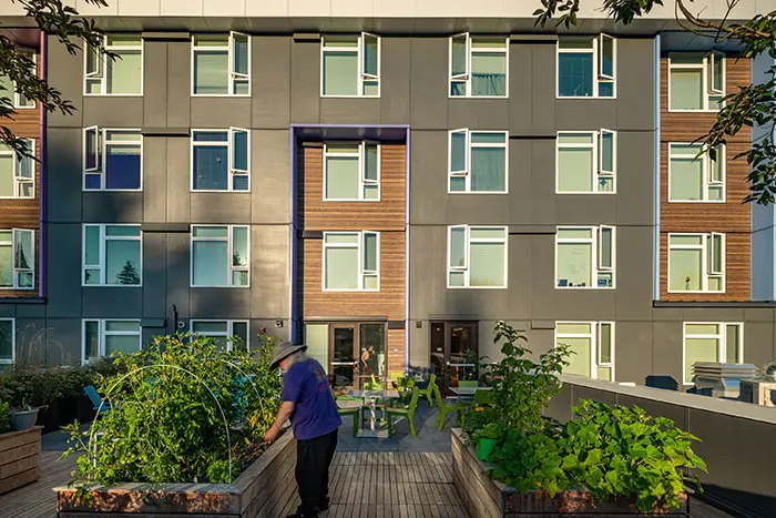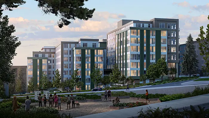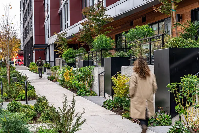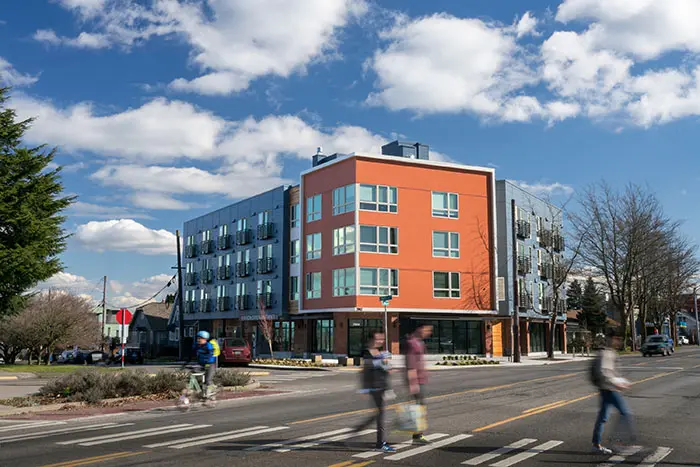 Providing a front porch to community. The Beacon Hill neighborhood is eclectic, with old and new low-rise commercial and residential buildings and single-family homes. By providing efficient units in close proximity to amenities and transportation systems, Jefferson Station is designed in a way that fosters community connections.
