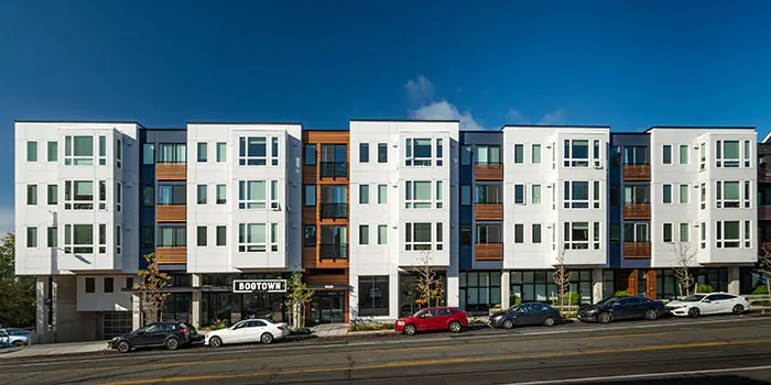 Responding to the unique needs of Totem Lake. The Bower is a six-story mixed-use building designed to serve the expanding Totem Lake neighborhood, creating a residential community of high-quality enduring design and increased density.